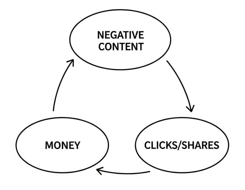 Negative content is what gets more clicks and shares, which drive the economic machine of online media.